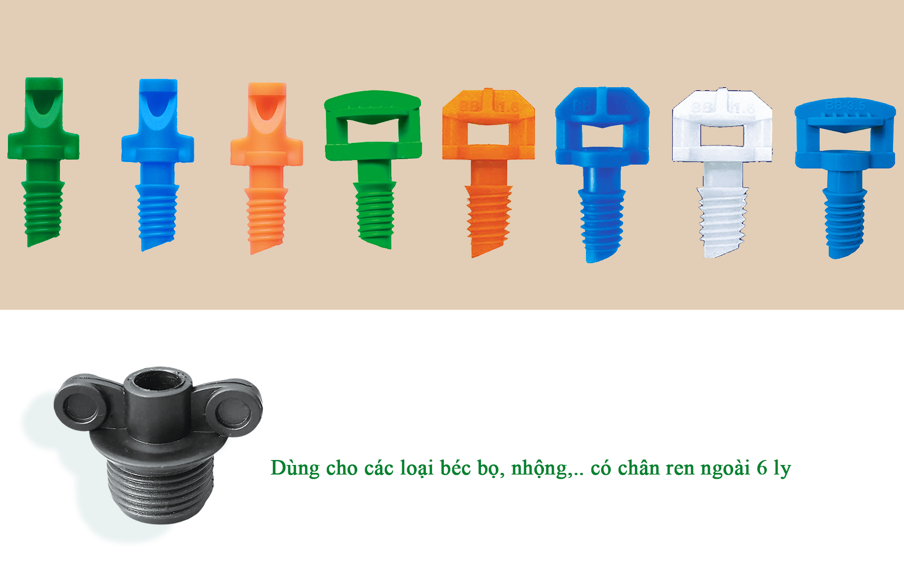 Dùng để gắn các loại béc bọ, nhộng có chân ren ngoài 6 ly