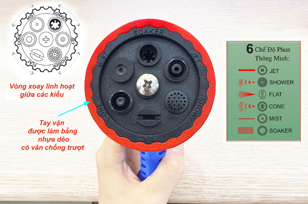 ✔️ Vòng xoay linh hoạt giữa các kiểu phun.